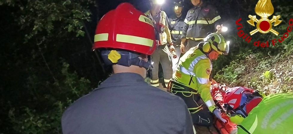 Immediatamente sul posto sono state inviate una squadra di vigili del fuoco, con il supporto di personale specializzato Saf (speleo-alpino-fluviale) per la localizzazione e il recupero del ciclista infortunato.