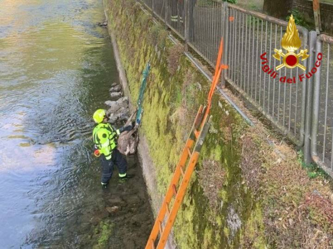 I vigili del fuoco del distaccamento di Salò sono intervenuti nel pomeriggio di oggi, lunedì 27 aprile, per recuperare un cervo, ormai senza vita, finito nel fiume Chiese, all'interno del territorio comunale di Vobarno, in Valle Sabbia, in provincia di Brescia.