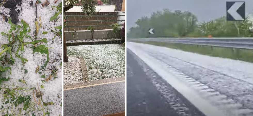 Un'improvvisa grandinata "imbianca" strade e prati: temporale e forte vento in Friuli
