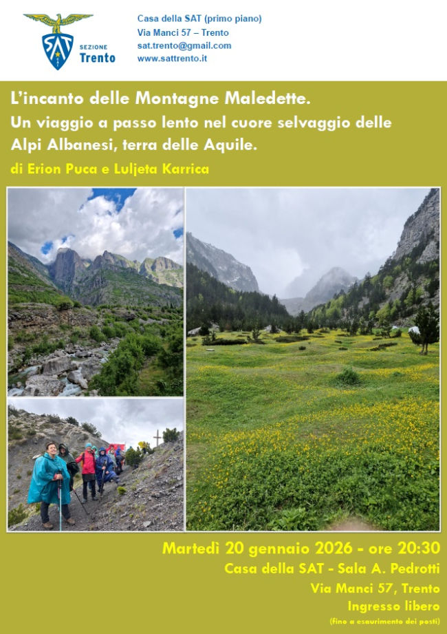 L'appuntamento con Erion Paco e Luljeta Karrica si inserisce ne "Le serate del martedì", la rassegna della sezione di Trento della Sat