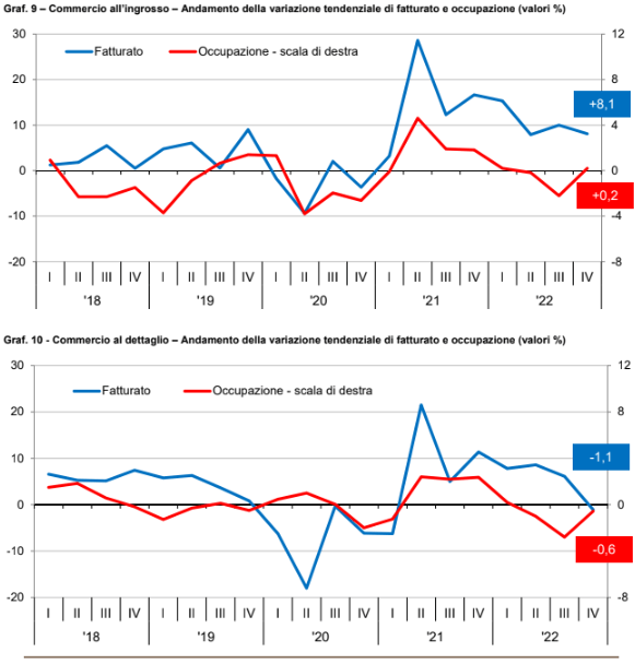 In particolare, si legge nel documento della Camera di commercio: “Si contraggono significativamente i ricavi delle vendite del comparto del commercio al dettaglio e delle costruzioni, il manifatturiero evidenzierebbe una dinamica leggermente negativa, mentre i restanti settori sarebbero comunque in crescita, ma con tassi decisamente più contenuti”. In particolare nel commercio al dettaglio si registra una contrazione del fatturato pari all'1,1%, con una stima della dinamica in termini reali però decisamente più negativa, con una diminuzione anche dell'occupazione e delle ore lavorate nel settore. Per quanto riguarda l'edilizia, che deve da una parte raffrontarsi con gli eccezionali risultati del 2021 e dall'altra con l'esaurimento degli incentivi nazionali, la variazione delle vendite al netto degli effetti inflazionistici: “Risulterebbe sensibilmente negativa, evidenziando quindi una contrazione in termini reali”.