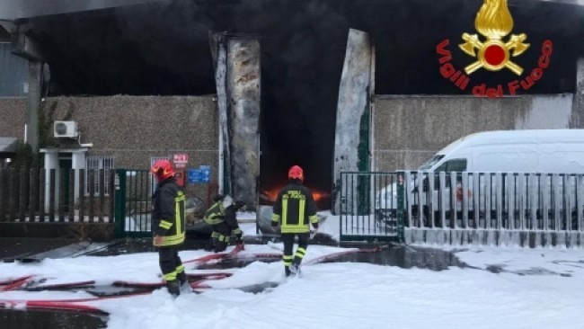 LE FOTO. Maxi incendio ad un deposito di rifiuti. A fuoco un'area di 1400 metri quadrati nel milanese