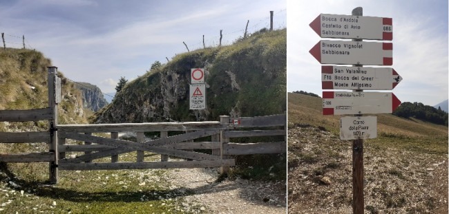 Prima di illustrare l’itinerario, però, è bene chiarirne i dettagli tecnici, così da potersi attrezzare per un’eventuale escursione. Il percorso, che sarà presto arricchito da nuove e dettagliate tabelle esplicative, presenta interesse sia dal punto di vista storico che da quello naturalistico. Appartenenti al massiccio del Baldo, vero e proprio “giardino botanico d’Europa” (QUI un approfondimento), le cime del Monte Vignola (1607 metri) e del Corno della Paura (1532 metri) spiccano per ricchezza floristica e faunistica, tanto che risulta piuttosto facile imbattersi in camosci e marmotte.