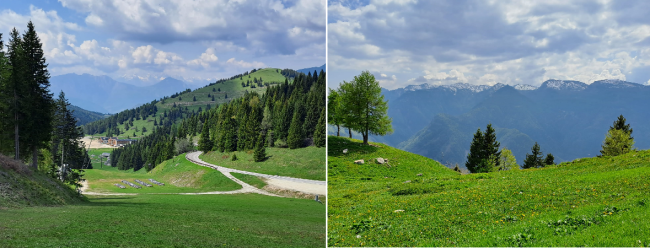 Visitata la zona, dall’ampia area erbosa posta di fronte alla facciata partono i sentieri che scendono verso la Forra del Lupo (QUI l’articolo) e Baita Tonda. Da quest’ultimo rifugio si può tornare a Passo Coe attraverso il piazzale degli alberghi di Fondo Piccolo e le piste da sci.