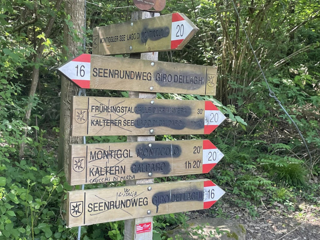 BOLZANO. Non c'è fine alla maleducazione, nemmeno in quota. I cartelli che indicano i percorsi attorno al lago Grande di Monticolo sono stati di recente imbratti con spray nero (con tanto di insulti ndr), rendendo la maggior parte delle scritte illeggibili.