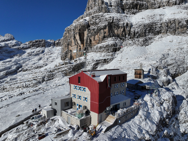 L’intervento in atto, nello specifico, prevede un aumento volumetrico contenuto, l’ammodernamento degli impianti e l’adeguamento alle normative di sicurezza, con l’obiettivo di migliorare la funzionalità e il comfort del rifugio, preservandone al contempo il valore storico e paesaggistico nel cuore delle Dolomiti di Brenta.