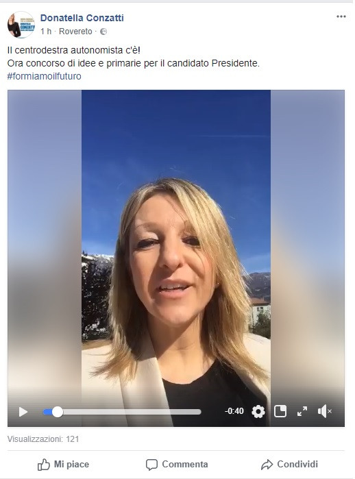 La proposta di un'assemblea programmatica e di primarie è stata lanciata su facebook dalle senatrice Donatella Conzatti. Maurizio Fugatti: "Pensiamo al programma e poi il presidente sarà la persona che più rappresenta la coalizione". Fratelli d'Italia: "Temi che dovranno essere discussi in coalizione"