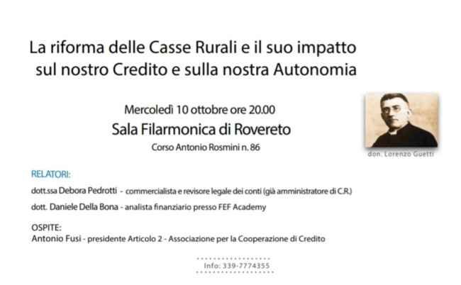 Debora Pedrotti, già amministratrice in Cassa rurale di Isera, gira il Trentino per spiegare insieme all'analista finanziario Daniele Della Bona e Antonio Fusi la riforma pronta a partire all'inizio del prossimo anno: "Sarebbe un errore deliberare senza la giusta consapevolezza, bisogna prendere il tempo necessario prima delle ratifiche finali"