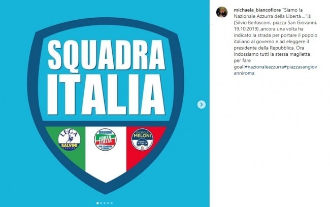 "Silvio Berlusconi - aggiunge Biancofiore - ancora una volta ha indicato la strada per portare il popolo italiano al governo e ad eleggere il presidente della Repubblica. Ora indossiamo tutti la stessa maglietta per fare goal".