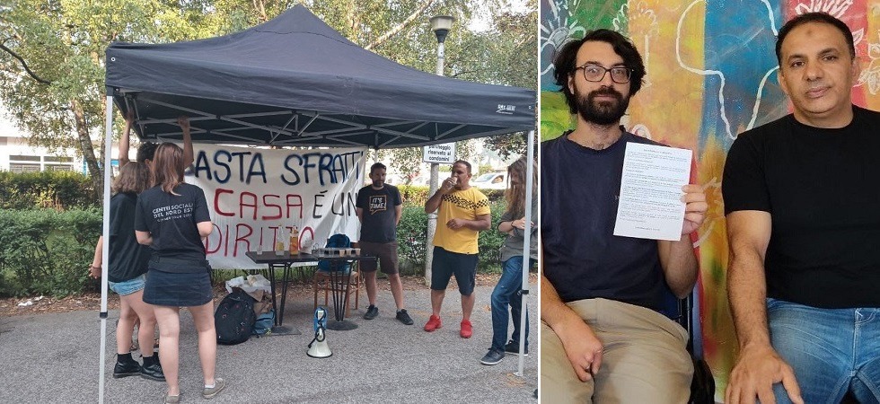 Lo sfratto della famiglia che rischiava di finire in strada per non aver pagato le spese condominiali (poi saldate) è stato rinviato dopo l’intervento degli attivisti del Centro sociale Bruno: “Lottiamo contro il vuoto istituzionale, l’ufficiale giudiziario è stato costretto ad andarsene”