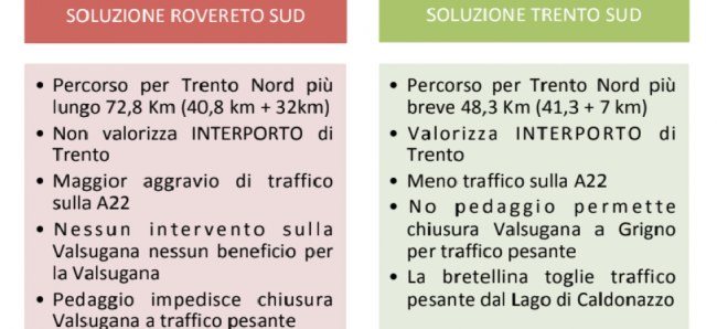 Rossi e il Patt nella legislatura 2013-2018 avevano fortemente sostenuto il tracciato che prevedeva un prolungamento dell'A31 da Piovene Rocchette fino a Trento Sud con una bretella di alleggerimento per la Valsugana prima dei laghi, finalmente, così, liberi dal traffico pesante. E tale scenario prevedeva un’ottimizzazione dei collegamenti tra la SS47 della Valsugana e SS 12 del Brennero in provincia di Trento in prossimità di Mattarello/Trento Sud; un efficientamento dei collegamenti che percorrono la Valsugana in territorio Veneto; interventi sulla SS47 della Valsugana che risolvessero le criticità presenti nel territorio Veneto (QUI IL DETTAGLIO DELL'OPERA CON IL CONFRONTO CON ROVERETO SUD).