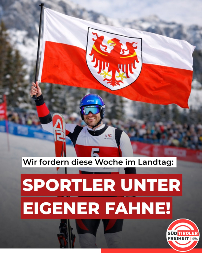 La nota della Süd-Tiroler Freiheit: "I nostri atleti ottengono risultati eccellenti, ma devono gareggiare sotto bandiere straniere e sono vincolati a strutture nazionali che non rispecchiano la loro identità, i loro risultati e le loro peculiarità"