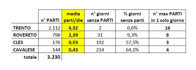 Per intenderci la soglia 'corretta' in termini di sicurezza e qualità di un punto nascita è ritenuta essere sopra i 1.000-1.500 parti all'anno. In queste strutture il medico lavora, tiene un ritmo tale da garantire il suo standard professionale e magari riesce a migliorarlo, la struttura per questo attira i più bravi che sanno di poter crescere e c'è un'abitudine all'intervento che garantisce sicurezza anche ai pazienti. Sotto i 1.000 si è già sotto il livello minimo. Si è fissato, però, un limite-limite di 500 per le aree svantaggiate e lontane dai centri principali. A Cavalese nel 2025 sono nati 154 bambini a Cles 193. Tenere aperte queste strutture è un danno economico per il sistema sanitario generale ma fa scappare anche i medici che vengono mandati a lavorarvici (magari anche solo per un turno per coprire i vuoti). A Cavalese il 64% di giorni nel 2025 è stato senza parti (dati al 30 novembre 2025) a Cles il 57%.