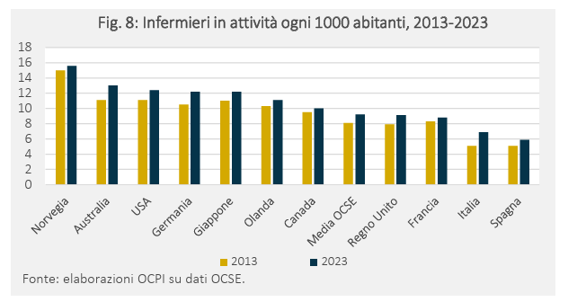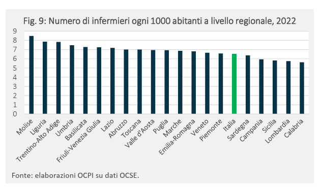 Ad oggi il numero di infermieri ogni 1000 abitanti in Italia è pari a 6,9 nel 2023, in aumento rispetto al 2013 (5,1), ma largamente sotto alla media Ocse (9,2). Solo la Spagna tra i Paesi più grandi ha un numero minore (5,9). Tra i Paesi con numeri maggiori, vi sono Usa (12,4) e Germania (12,2). Fortunatamente chi è arrivato prima di Fugatti e Segnana ci aveva già pensato e con Verona è da tempo che si lavora a formare nuovi infermieri. Il Trentino Alto Adige è tra i territori nazionali messi meglio ma resta sotto media Ocse e comunque è tutto il Paese che deve riuscire a fare un cambio di passo sennò finirà male perché, come dicevamo, qui si gioca la partita principale per il sistema sanitario nazionale.