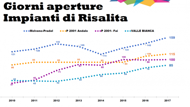 Positivo anche il dato che evidenzia l’aumento di arrivi e presenze in giugno e settembre, testimoniato anche dall'ottima risposta delle società degli impianti di risalita, che hanno aumentato i periodi di apertura, in alcuni casi anche di un mese negli ultimi 7 anni.