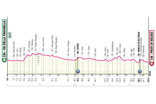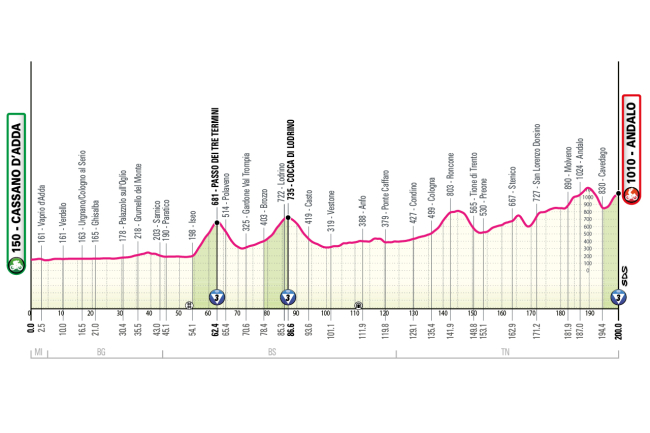E' nella terza settimana che si collocano le frazioni trentine. Si sono viste tappe più dure ma a quel punto della competizione tutto può accadere. Le date da segnare in rosso sono quelle di mercoledì 27 maggio traguardo di Andalo dopo 200 chilometri con partenza da Cassa d'Adda, e del giorno successivo quando si parte da Fai della Paganella con arrivo 167 chilometri a Pieve di Soligo.