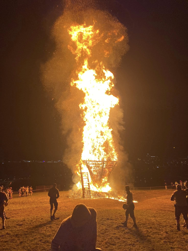 Il rogo brucia tutta la notte e mentre i fuochi si abbassano le persone si spostano in paese scuotendo campanacci o altri oggetti che facciano rumore così da prendere parte a un corteo.