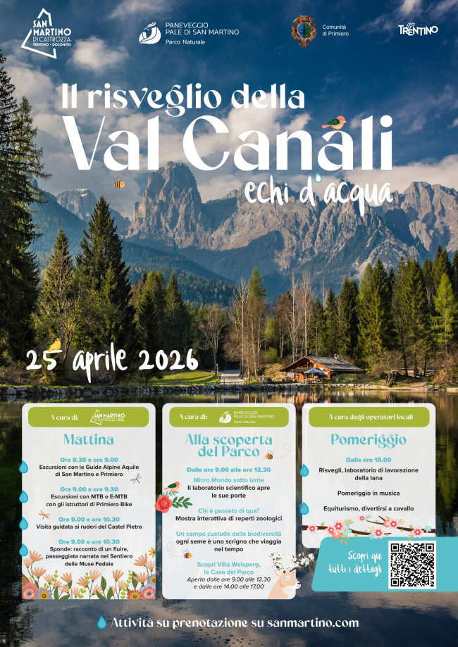 “Il Risveglio della Val Canali – Echi d’Acqua” è una giornata esperienziale che intreccia natura, cultura e tradizioni, dedicata al tema dell’acqua come elemento vitale e narrativo