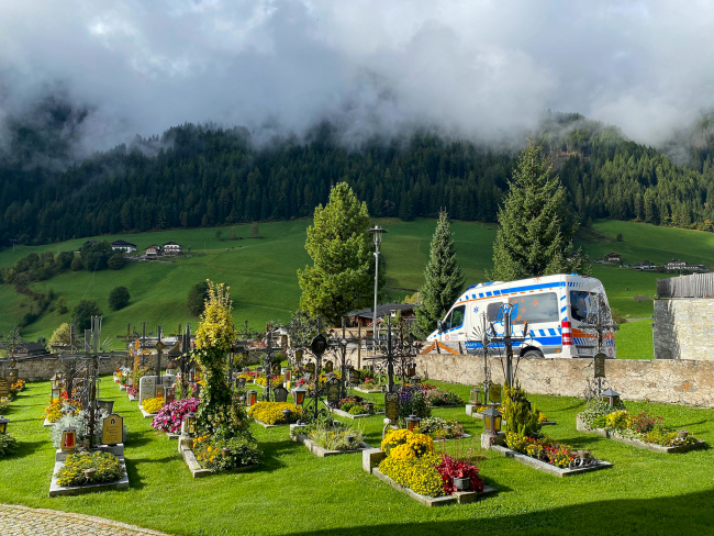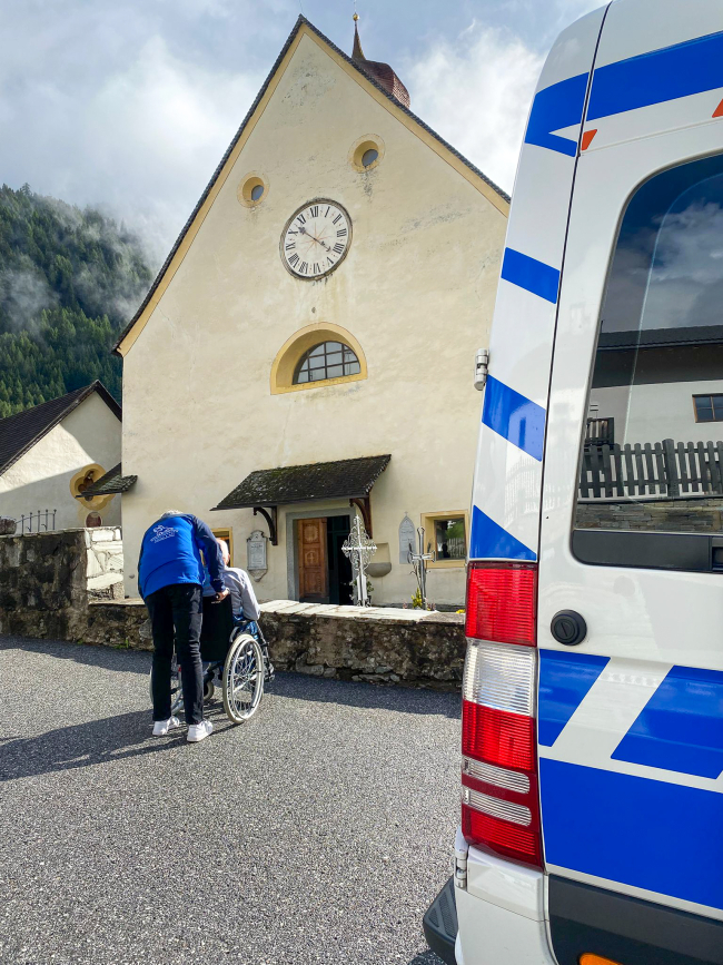 Così dopo una visita al cimitero, il signor Josef ha potuto ammirare ancora una volta la sua terra d'origine e respirare l'aria del paese natale Fundres, accompagnato dai volontari.