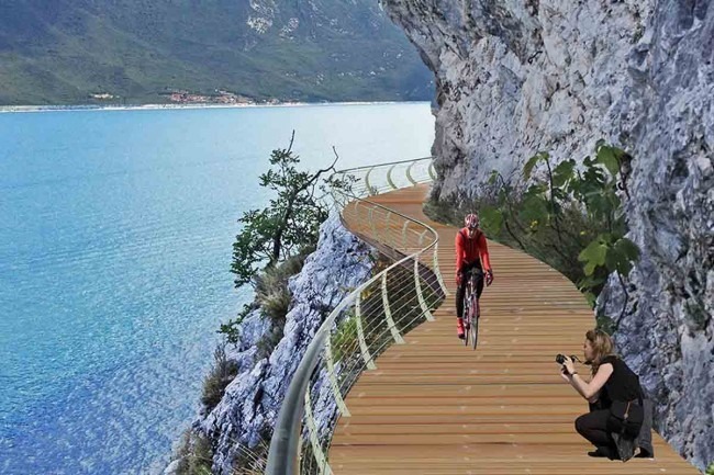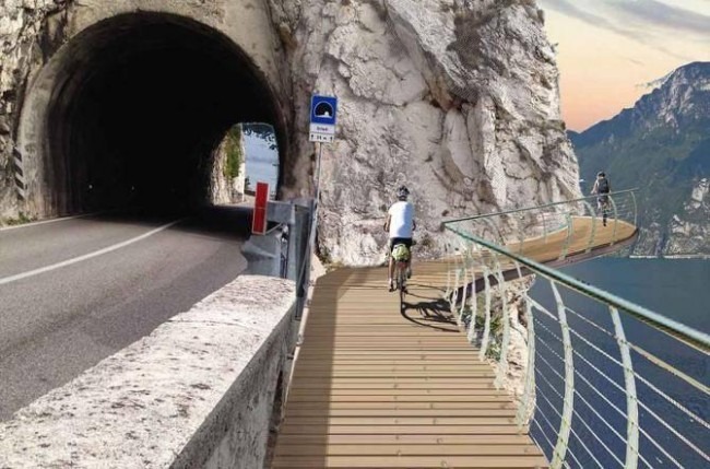 L’intero progetto dovrebbe essere completato entro il 2021 e permetterà di percorrere tutto il Garda passando sotto a vecchie gallerie, tratti di strade oggi dismesse e le nuove piattaforme che verranno messe a sbalzo sul lago.