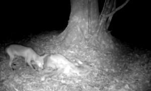 IL VIDEO. Volpacchiotto si aggira guardingo nel bosco (ma non è da solo)