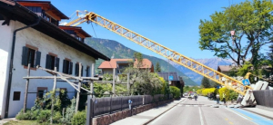 Il macchinario è crollato e ha colpito un'abitazione danneggiandola, dopo l'allarme sono intervenuti i vigili del fuoco